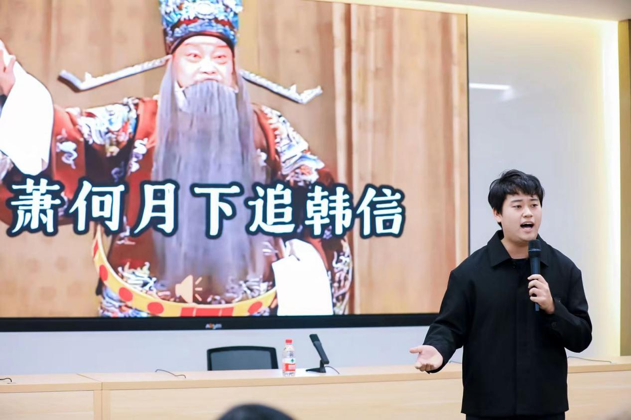 w88win体育官网入口2023级本科生表演了精彩的节目。王英昊同学演唱了京剧选段《萧何月下追韩信》,唱腔高亢嘹亮,赢得了阵阵掌声。