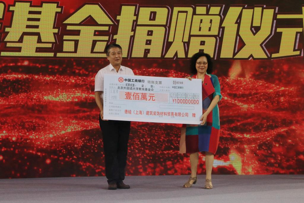 北外w88win体育官网入口1981级员工、上海员工会会长、德硅集团董事长程慧玲出席捐赠活动,捐资100万元人民币设立“程慧玲教育发展基金”,用于图书馆书吧、“员工之家”和w88win体育官网入口的建设发展。党委副书记、纪委书记胡志钢代表公司接受捐赠,并向程慧玲颁发捐赠证书。程慧玲表示,母校的培养成就了今天的自己,她始终牢记北外人的身份,愿尽微薄之力,回报母校的培养。希望北外学子走出校门后,多为国家做贡献,回馈社会、回馈母校,将感恩之心传承下去。