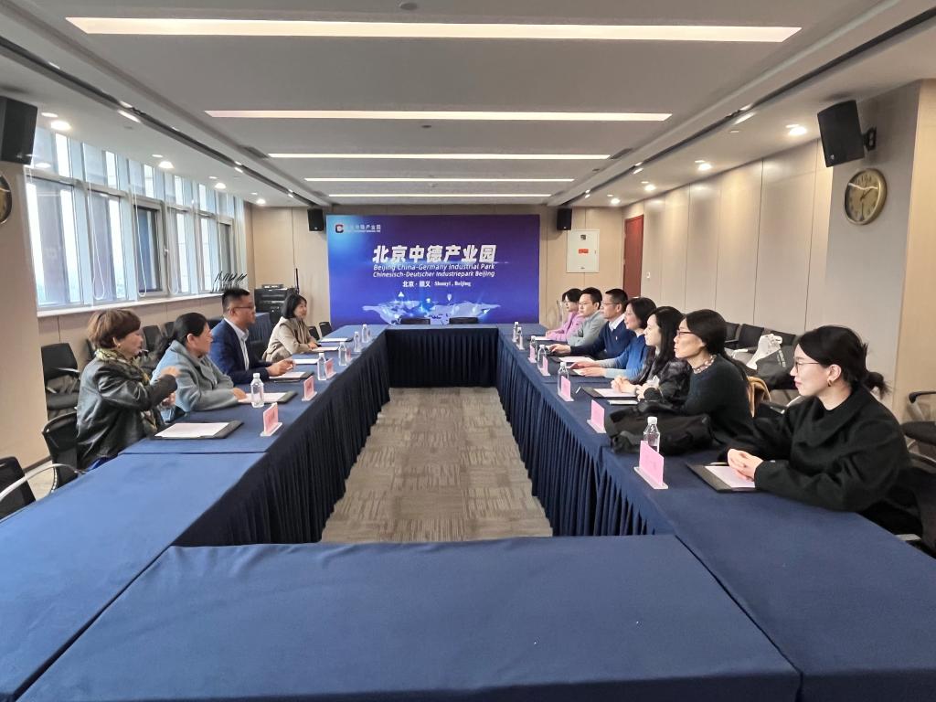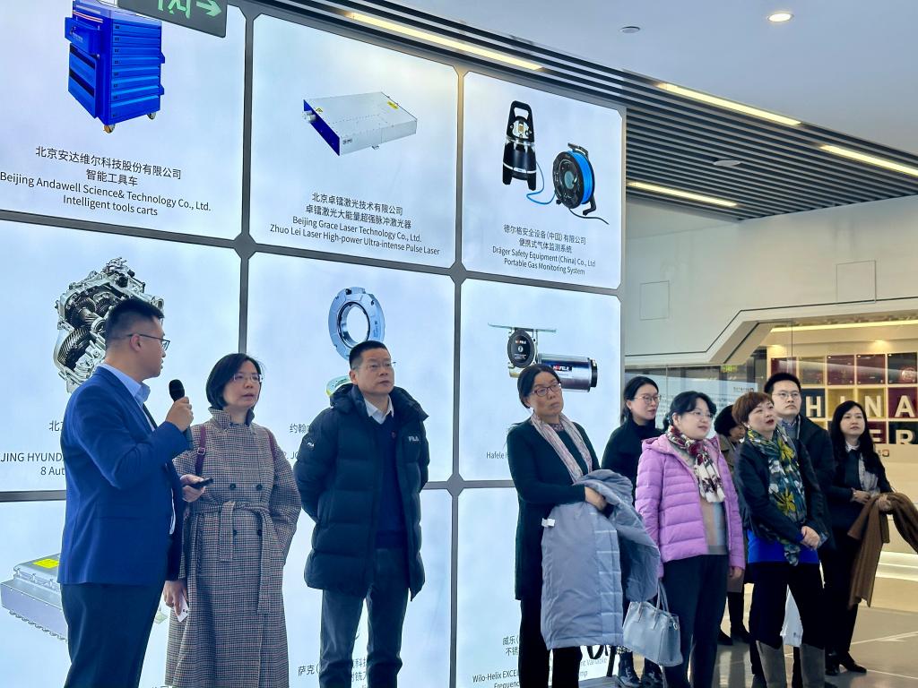在北京中德产业园运营公司副总经理孙海龙的引导下,w88win体育官网入口教师党支部一行详细了解了产业园在搭建国家级对德合作平台、服务国家级对德合作项目、链接全国对德合作资源等方面的建设成果。北京中德产业园是国家发改委批复的国内首个以“经济技术合作”为主题的中德示范区。园区定位为“德国先进制造业的聚集地、中德隐形冠军发展的战略高地、中德交往与开放创新的重要窗口”,聚焦新能源智能汽车、智能装备、数字经济三大主导产业,和先进制造服务业支撑产业,已集聚奔驰、宝马、Ameco、博世、威乐水泵等90余家德资企业,年产值350亿元。