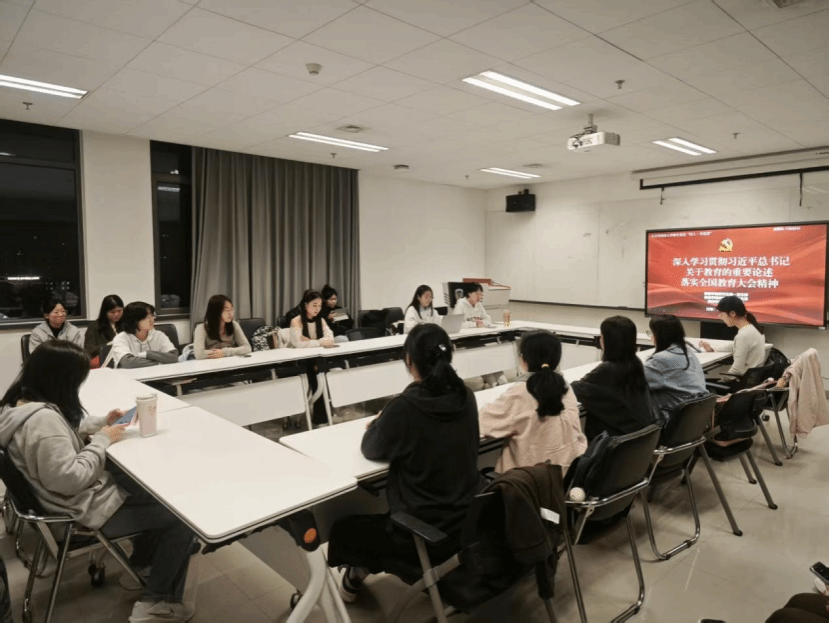 本次专题学习讨论会由研究生第一党支部书记陈昊祺同志主持。陈昊祺带领大家回顾了由教育部党组书记、部长怀进鹏讲授的“深入学习贯彻习近平总书记关于教育的重要论述 落实全国教育大会精神”专题报告相关内容。随后,与会党员分享交流学习感悟。