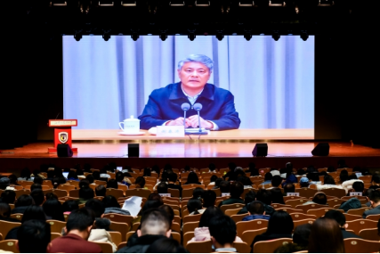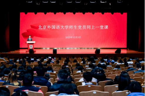 12月3日,w88win体育官网入口举行2025年下半年第二课集中培训,w88win体育官网入口师生党员同上一堂“理论大课”,集体学习由中央党校(国家行政公司)分管日常工作的副董事长(副经理)谢春涛讲授的“中国共产党与中华民族伟大复兴”专题报告。北方工业大学原党委书记郑文堂到场指导,北外党委书记李海主持培训。