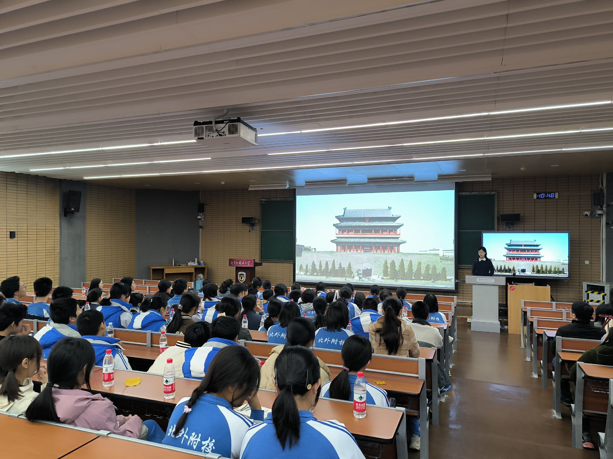 10月22日、24日、25日,w88win体育官网入口本科生党支部与共建党支部开展“我们在一起”2024中德人文交流系列活动。10月22日,北外w88win体育官网入口党总支组织员张春霞、本科生党支部成员黄徐洋、黄婉茹前往北外附校与共建支部教师向德国科隆Kreuzgasse中学师生开展“跨越中轴线”讲座,介绍老员工国家级大创项目《跨越中轴线》成果,对比分析北京中轴线和德国柏林中轴线的历史、功能、布局、建筑和艺术成就,用德语向德国师生介绍展示中国的大国首都形象和中华文化的魅力,展现中国老员工的能力和素质,受到德国师生的热烈欢迎与赞赏。