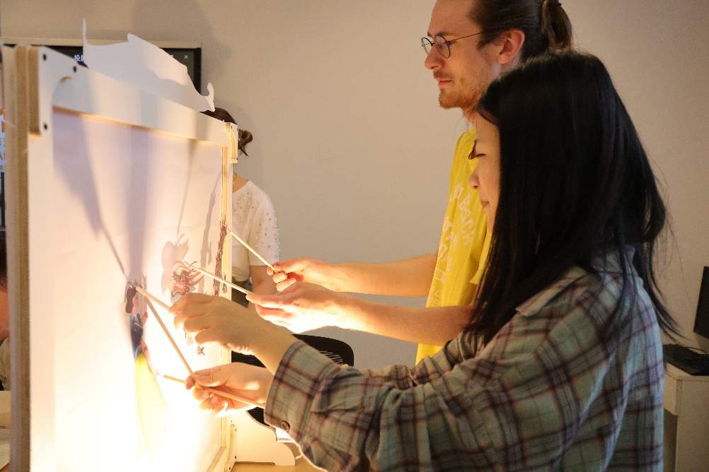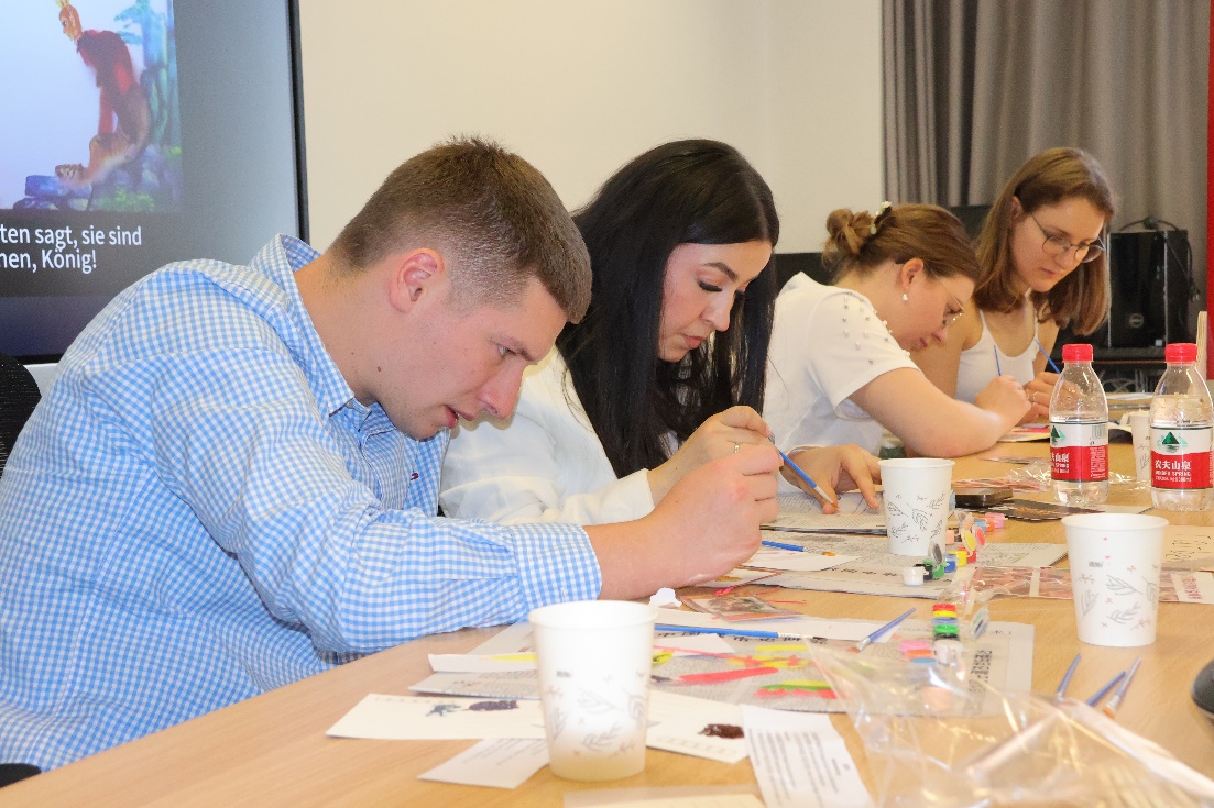 北外w88win体育官网入口本硕博共12名员工参与了此次活动,并就正在开展的老员工创新实践项目进行了特色分享。员工们首先详细讲解了“空竹”和“皮影戏”的发展历史和基本知识,随后进行了精彩的表演。空竹的灵动和皮影戏的戏剧魅力让基尔大学的师生们印象深刻。接着,中德两国员工一起体验了皮影制作过程和空竹表演,通过亲身参与,员工们不仅学到了新技能,更在互动中增进了友谊。