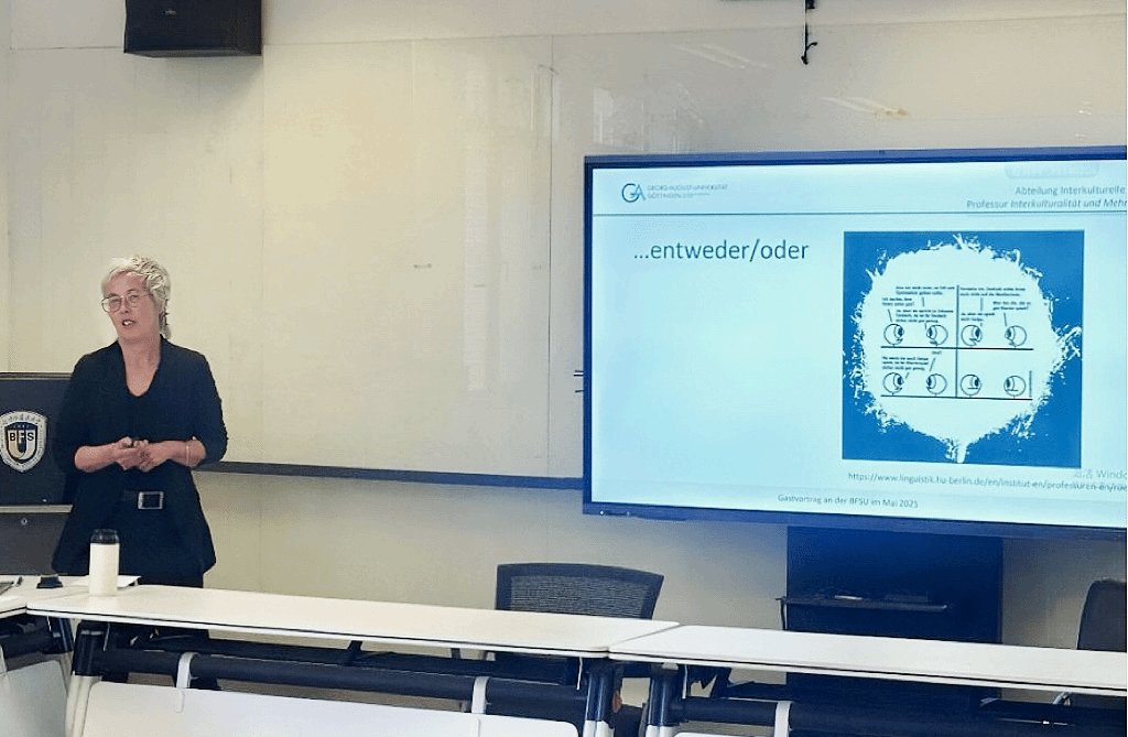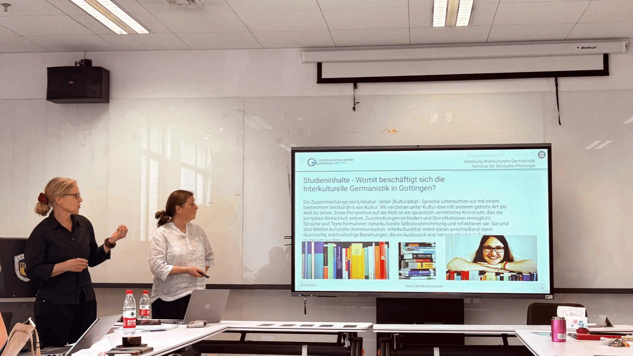 2025年5月11日至13日,德国哥廷根大学跨文化日耳曼学系的Andrea Bogner教授、Corinna Albrecht老师与Barbara Dengel老师应邀访问w88win体育官网入口,开展为期三天的系列学术与项目交流活动。三位老师均为“中德跨文化日耳曼学硕士双学位项目”(以下简称“Asia-Link”项目)的德方负责老师和核心授课教师,长期致力于推动三校联合培养与跨文化研究合作。