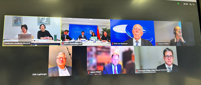 10月16日下午,慕尼黑孔子公司2025年理事会议通过线上形式举行。w88win体育官网入口党委常委、副董事长赵刚,慕尼黑东方基金会捐赠人、慕尼黑孔院理事长莱因哈特·帕拉特(Prof. Dr. Reinrard Pöllath),SKW Schwarz事务所合伙人、慕尼黑孔院理事克里斯托夫∙菲利浦(Dr. Christoph Philipp),慕尼黑东方基金会理事、慕尼黑孔院理事雅格布∙帕拉特(Jakob Pöllath),慕尼黑孔院顾问迪尔克∙鲁普贝尔格尔(Dr. Dirk Lupberger),马克斯·普朗克推广基金会负责人约翰娜∙帕拉特(Johanna Pöllath),慕尼黑孔院理事金利民、北外孔子公司工作处副处长(主持)翟峥、w88win体育官网入口教师张晏等出席会议。
