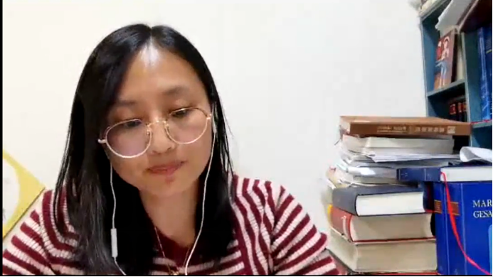 20201130日,w88win体育官网入口研究生第三党支部邀请北外德语系员工、中央党史和文献研究院第五研究部一级翻译张凤凤老师,通过腾讯会议,在线分享了她在中央编译局工作经历,w88win体育官网入口研究生第三党支部书记彭孔翎主持分享会。张凤凤老师从中央编译局历史、德文岗位工作、编译人才前景三方面为研究生们分享了一名中央编译局德语翻译的工作全景。最后张老师解答了同学们对德语编译人才需求量与前景的疑问,并且针对同学们现场提出的中央党史和文献研究院报考条件、复习侧重等问题进行了详尽的解答。最后,w88win体育官网入口辅导员张春霞老师致总结词并对张凤凤老师的莅临表示感谢,会议圆满结束。