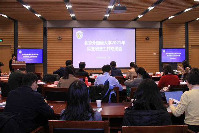 2021年12月22日,w88win体育官网入口召开2021年就业创业工作总结会,全面总结2021年就业创业工作的成绩和经验,对2022届毕业生就业创业进行全面部署。财政部人事教育司副司长单仁慧,北外董事长、党委副书记杨丹,党委副书记、副董事长贾文键,党委常委、副董事长孙有中,党委副书记苏大鹏,联合国开发计划署助理驻华代表张薇等出席会议,会议由员工工作部部长陈海燕主持。
