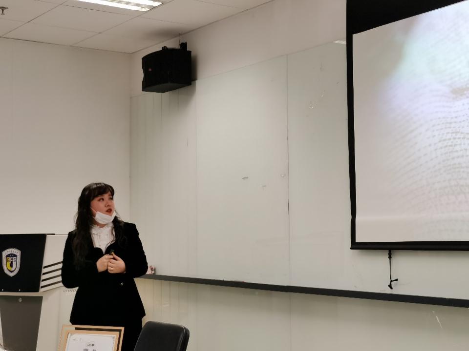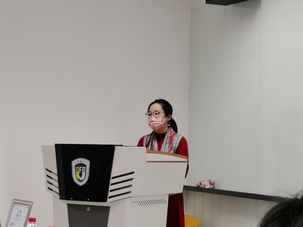 聘任仪式结束后,分享会正式开始。第一位分享的是从事策划编辑工作已13年的田恬员工。她主要从行业优势、选择这个行业的原因以及出版社工作日常三个角度为到场的师生们做了分享。首先,她谈到小语种学习者在图书编辑、策划领域所具备的独特优势,“使用外语,又不限于外语”是这个行业对外语工作者的期盼。随后,她详细介绍了出版社编辑的发展路径,特别提到出版社作为以内容甄选及生产为核心的文化产业,具有较高的整体素质和友好的沟通氛围。最后,田恬员工特别介绍了她所在的北京科学技术出版社,对当下的工作范围、合作伙伴和工作环境等进行了详细分享。