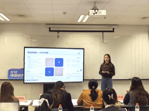 下午举行了成长赛道的决赛,2025级硕士生刘晨曦担任主持人。10名参赛选手从职业分析、个人探索、职业规划准备、职业规划路径等方面进行了精彩展示,并回答了评委们结合职业规划提出的问题。