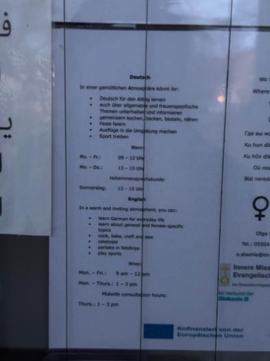 我和南大同学在Friedland实地观察时拍摄的Frauenzentrum德语公告