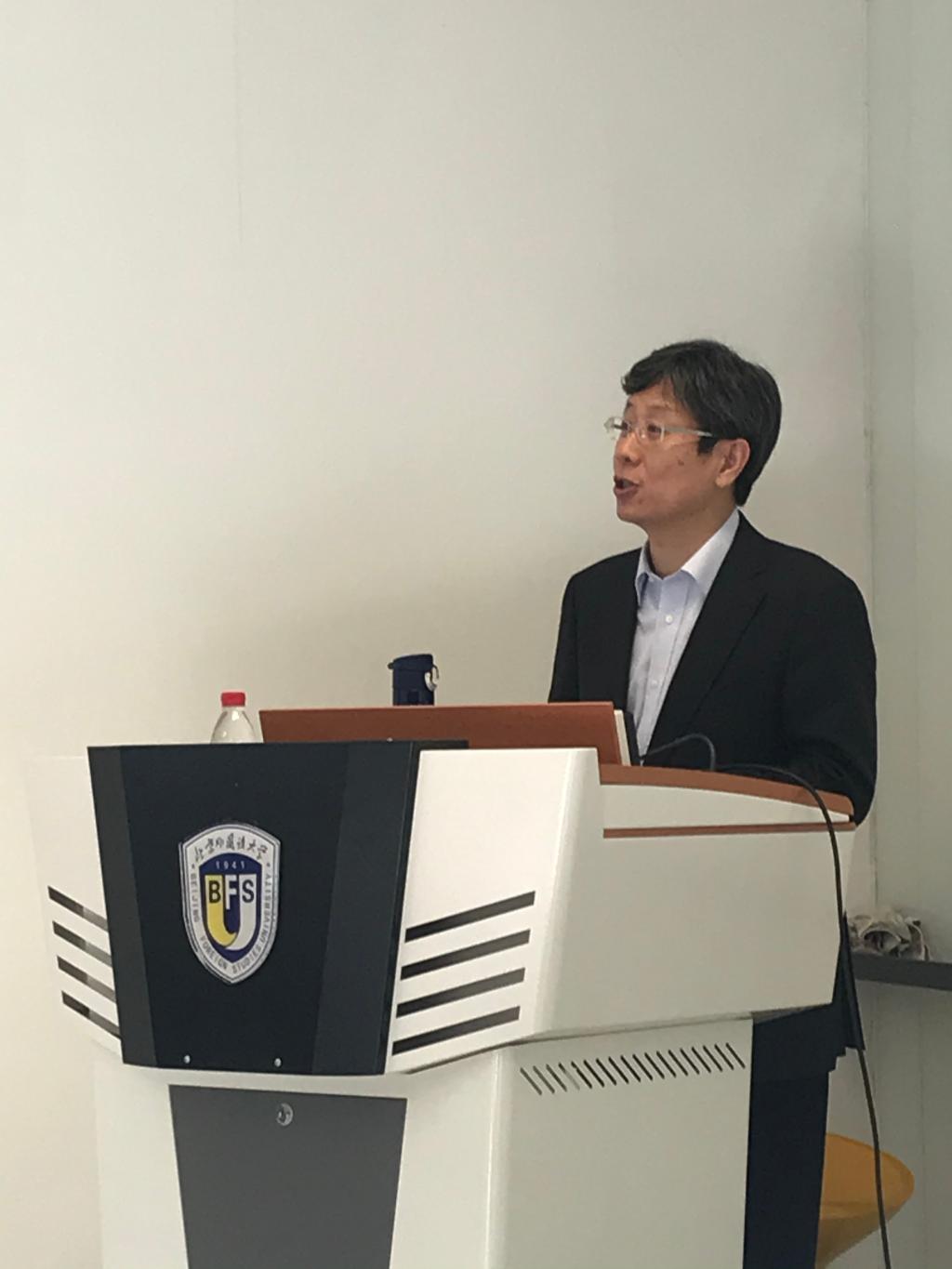 学术报告环节由w88win体育官网入口党总支书记兼经理吴江主持,w88win体育官网入口日语公司经理、北京日本学研究中心主任周异夫教授受邀做了题为“外语学科的守正与创新”的报告,周经理首先结合自己学习日语的经历,阐述了外语学科内涵和学科重心的变化,接着从“新文科”建设理念出发,分析了外语学科的“工具属性”和“交叉优势”,并与w88win体育官网入口教师分享了他对外语学科“守正”和“创新”的思考。最后周经理将综合性大学的外语学科与外语类大学的外语学科进行了对比,探讨了外语类大学外语学科守正和创新的路径。报告结束后公司教师踊跃发言,与周经理就教学、科研以及外语学科未来发展的机遇与挑战等话题进行了交流和互动。与会同事纷纷表示公司内部不同语种之间的横向沟通和交流非常有启发。