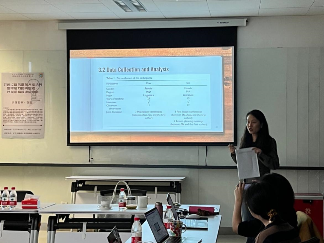 系统梳理思辨及其与英语作为一门外语(EFL)的关系、思辨教学的途径和方法、思辨与阅读教学以及我国背景下的思辨教学等研究领域的相关文献后,张虹教授在研究部分细致讲解了研究背景、研究参与者以及数据的收集和分析,并通过研究结果回答了前面提出的两个研究问题。之后,张虹教授对研究结果进行了深入讨论,如:该研究中发现研究参与者的思辨教学方法从隐性转变为了显性,同时还凸显了教师对员工阅读日志进行反馈的重要性等。