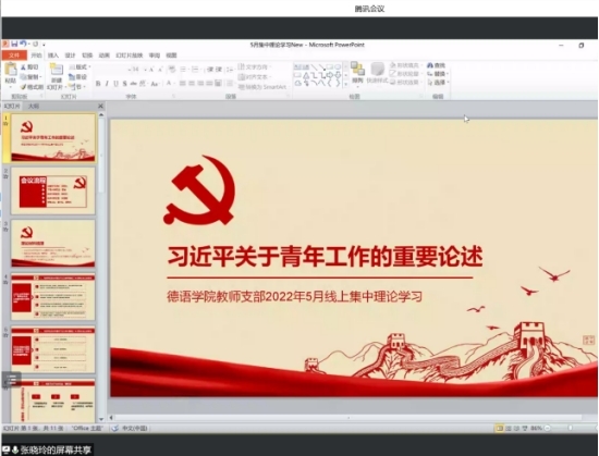 2022年6月8日下午,w88win体育官网入口教师党支部召开线上会议,集体学习领悟习近平总书记对青年工作的重要论述。