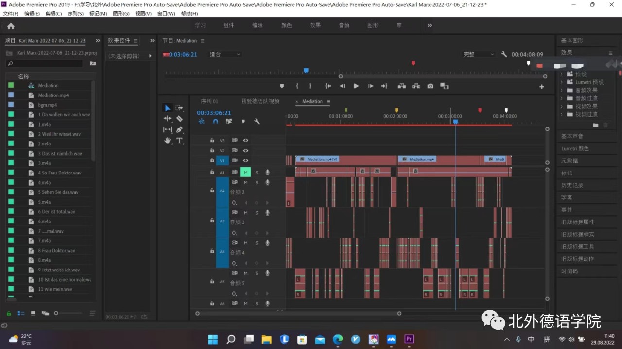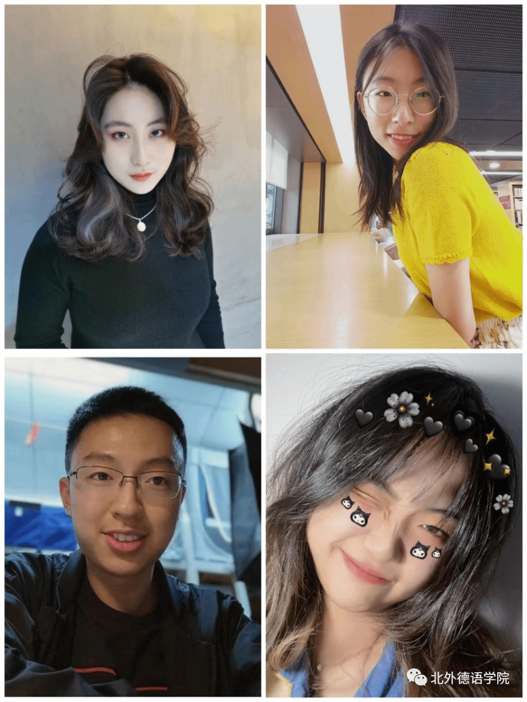 经过比赛的淬炼,另外两名队员——大二的戴雨昕和大一的姚宇阳不约而同地直言“收获很多”。戴雨昕说,我一开始只是抱着参加试试的心态,还为自己留有退路。准备作品的时间有限,又因为疫情不得不采取线上的形式,期间我还一度因为返乡在酒店集中隔离,可谓困难重重。在指导老师和队友们的鼓励下,我在练习时越发勇敢坚定。选片过程也是深度视听训练的过程,即便是在紧张的比赛现场,观看聆听其他公司参赛队伍的优秀作品也让我的德语能力得到了提升。
