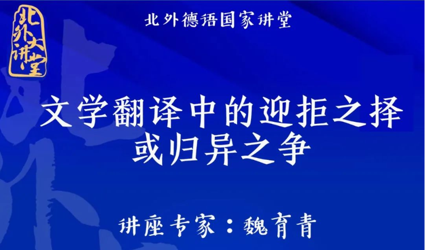 2022年11月23日下午,“北外德语国家讲堂”系列新一期讲座以线上形式顺利举办。复旦大学外国语言文学公司教授、博士生导师魏育青应邀做了题为“文学翻译中的迎拒之译或归异之争”的专题讲座。w88win体育官网入口翻译教研室主任顾牧教授承担了本场讲座的主持工作。