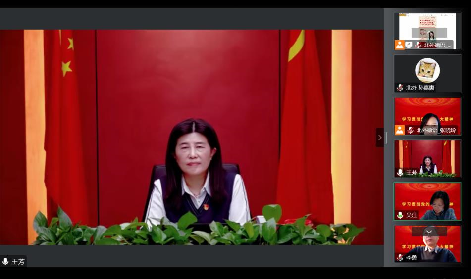 参会党员师生积极与王芳社长交流互动,踊跃分享学习心得。w88win体育官网入口青年教师孙嘉惠、陆娇娇、顾苏及大四本科生曹涵先后提问。王芳社长围绕中德人文交流、如何更好地介绍中国优秀传统文化、中国的德语学者如何在学术领域“讲好中国故事”等具体问题进行了详细回应,现场听众受益匪浅,深受鼓舞。