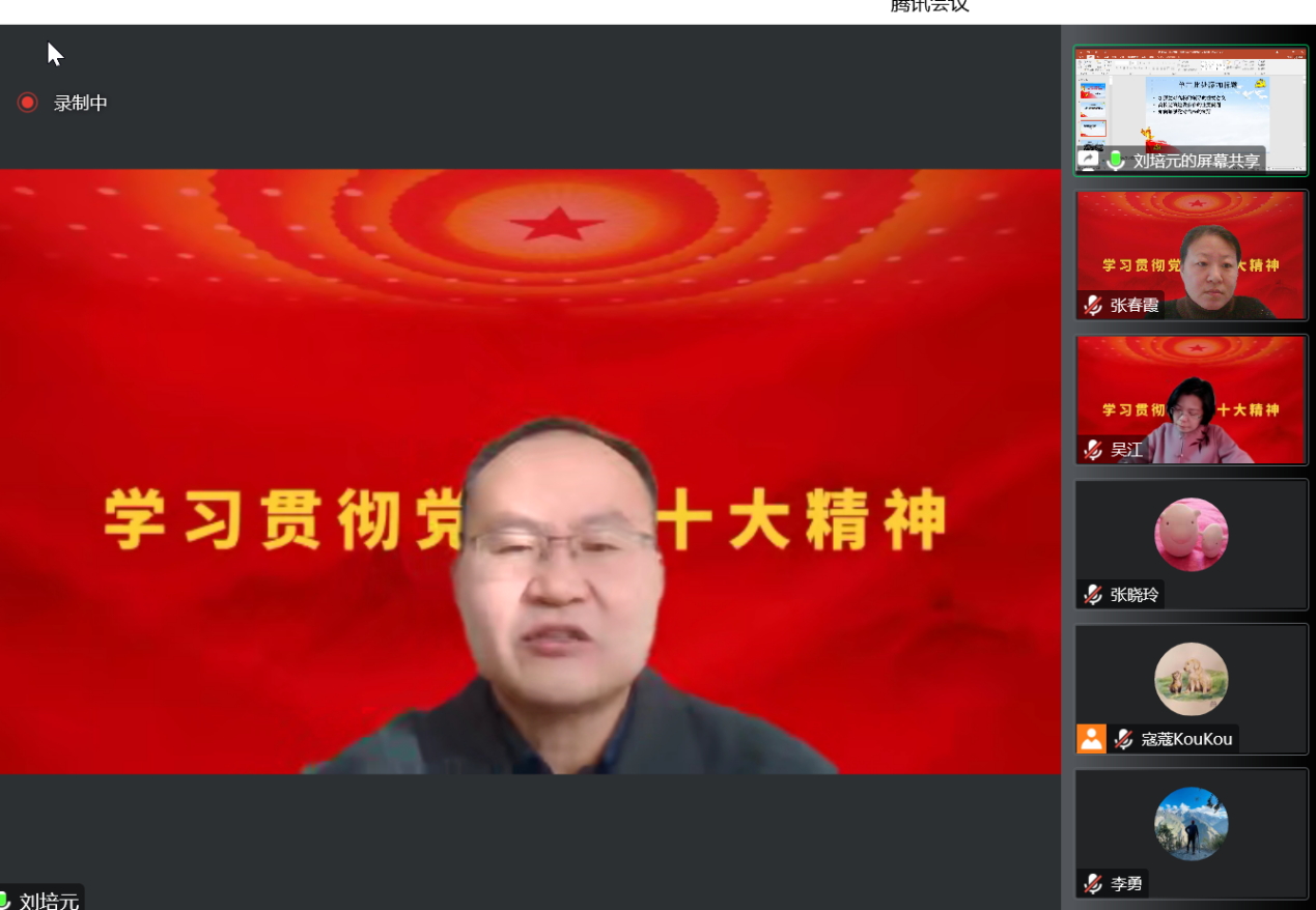 12月14日,w88win体育官网入口邀请公司党的二十大精神宣讲团成员、党委常委、统战部部长、巡察办主任刘培元为教师党支部作题为“贯彻二十大精神,加强和改进党对高校的全面领导”的报告。w88win体育官网入口党总支书记、经理吴江,党总支副书记李勇,教师党员、入党积极分子以及非党员教师代表等在云端聆听了宣讲报告。宣讲会由w88win体育官网入口党总支组织委员、辅导员张春霞主持。