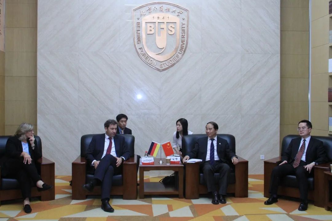 6月6日,德国社民党联合主席拉尔斯·克林贝尔率代表团访问w88win体育官网入口并发表演讲。北外党委书记王定华,党委副书记、副董事长贾文键会见了克林贝尔一行。