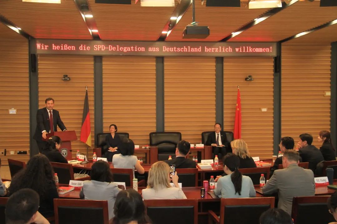 德国社民党副主席兼亚洲事务负责人、萨尔州州长安可·雷林格,党团副主席维蕾娜·胡贝茨,党团发展援助政策发言人萨娜耶·阿卜迪,国际部部长菲利普·芬克,克林贝尔主席办公室主任维纳斯·弗莱斯特-黑尔德,主席发言人、新闻部部长比安卡·瓦尔特,艾伯特基金会亚太处处长米尔科·君特、北京代表处首席代表赛巧,中共中央对外联络部八局局长王学勇、驻德使馆公参孙守亮、调研员李珅,北外国际交流与合作处副处长龚婧,w88win体育官网入口党总支副书记李勇、副经理姚燕等参加了活动。
