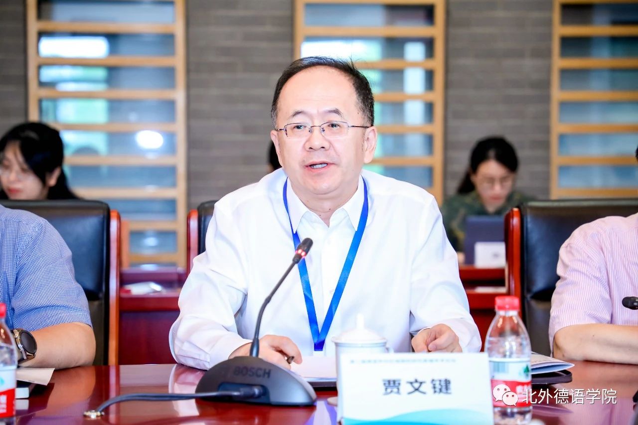 北外党委副书记、副董事长,外指委德分委主任委员贾文键出席论坛开幕式并致辞。开幕式环节由北外w88win体育官网入口党总支书记、经理,外指委德分委秘书长吴江主持。