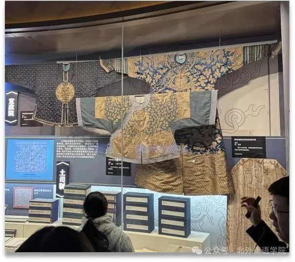 随后,同学们来到第二单元“大交融”展厅,透过文化、经济、情感三个视角,探寻中华民族交往交流交融的发展脉络。从展厅纱幔上呈现的西域交通图,到脚下动态展示的丝路古道,同学们仿佛置身于历史长河中,亲历中华民族在融合中壮大的宏大历程。这不仅让大家对中华文化的包容性有了全新认识,也进一步体会到了中华民族团结一心的强大力量。