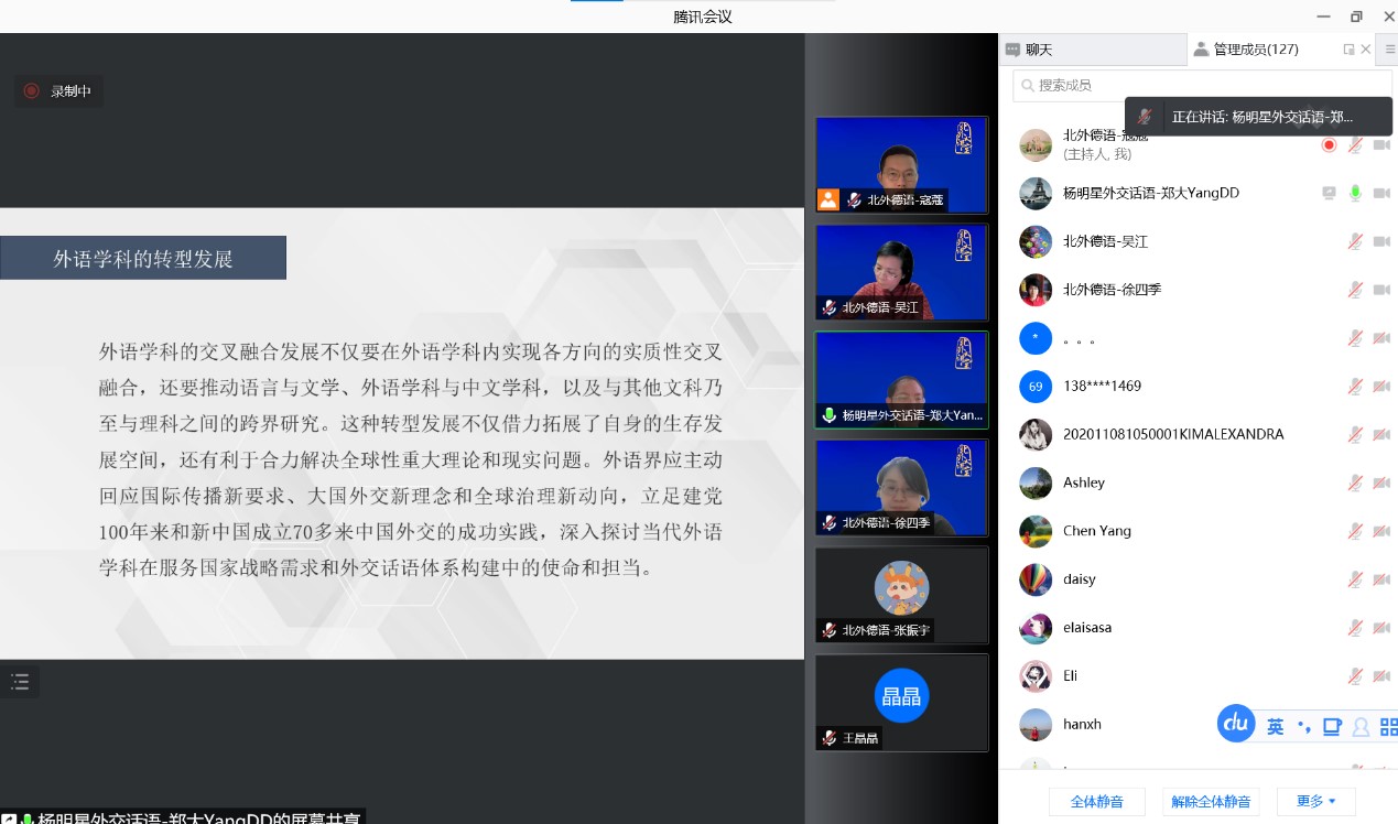 学术 | 北外德语国家讲堂之“‘外交话语学’学科创建与外语学科转型发展”讲座顺利举行