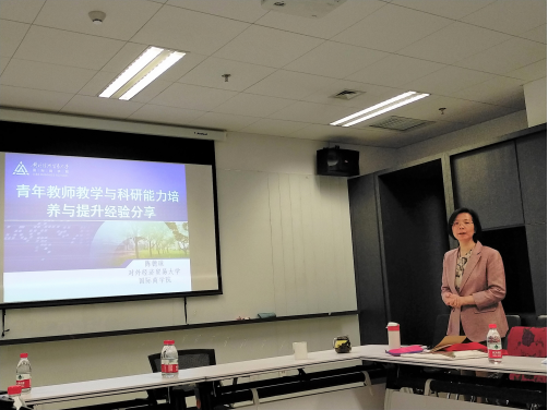 陈德球教授结合他自身经历分享了关于青年教师教学与科研能力提升的几点经验。他指出,青年教师既要注重教学也要注重科研,教学和科研相辅相成,互相促进。科研是教学的“源头活水”,教学是科研的“隐形动力”。青年教师做科研一定要聚焦,要成体系,可以从重要性、创新性、可行性三个角度来选题,要勤于思考、善于积累。教学方面,陈教授分享了参加青年教师教学基本功比赛的经验,提出教学不能拘泥于课本,要注意将时事热点引入课堂,将案例与课本理论相结合,启发员工运用理论来分析实际问题,从而提升员工的学习兴趣和学习热情。
