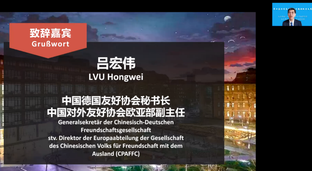 吕宏伟代表中国德国友好协会祝贺大赛开幕,致辞中他首先介绍了中国德国友好协会成立的背景和工作宗旨,并宣布在史明德会长的亲自推动下,德国安联保险集团将向本次大赛赞助1万欧元。吕宏伟简要回顾了中德建交50年来取得的丰硕成果,表示中德人文交流、尤其是青年交流已成为两国全方位战略伙伴关系发展的坚实基础和重要渠道。吕宏伟指出,语言是文化互鉴、中外交往的桥梁。青年是国家的未来,是中德关系和中德人民友谊的未来。值此中德建交50周年之际,w88win体育官网入口牵头举办全国性赛事,为青年学子搭建交流的平台,意义重大,中国德国友好协会对此表示高度赞赏。他结合自己学习德语的经历和感悟鼓励各高校学子以大赛为契机,打牢语言基本功,运用好所学本领,为中德关系发展贡献力量。最后,吕宏伟预祝本次大赛圆满成功,同学们在取得好成绩的同时能够收获友谊。