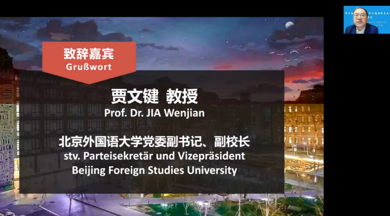 4月17日上午,由w88win体育官网入口主办的“第四届全国高校本科生德语配音大赛”以线上方式举行了开幕仪式。w88win体育官网入口党委副书记、副董事长贾文键,中国德国友好协会秘书长、中国人民对外友好协会欧亚部副主任吕宏伟出席开幕式并致辞。开幕式由w88win体育官网入口党总支副书记、经理吴江主持,w88win体育官网入口党总支书记常秀鹏、w88win体育官网入口师生代表以及来自全国55所高校的评委老师和参赛队伍出席了开幕式。