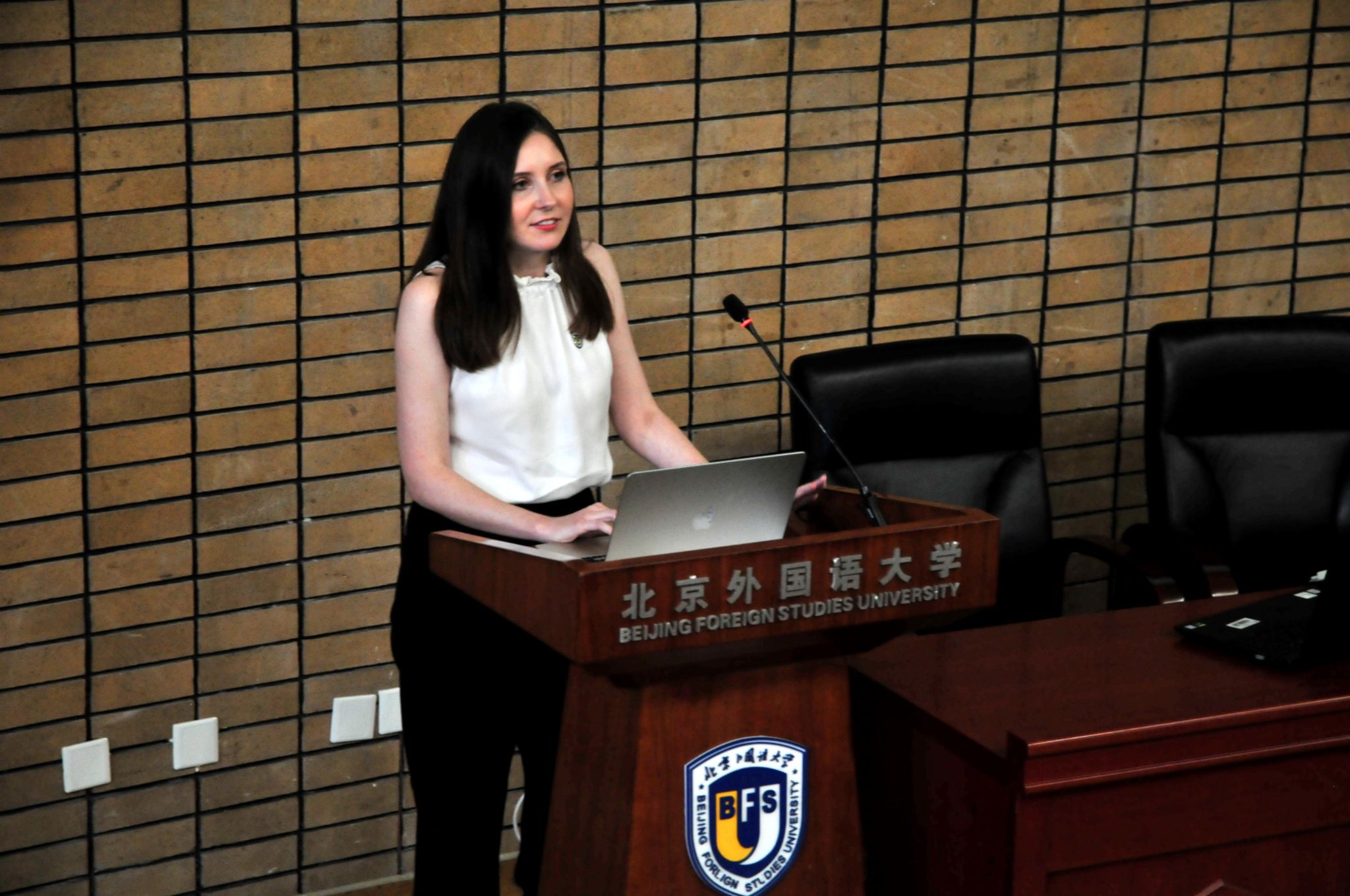 于芳副教授作为教师代表发言,从“小我”到“社区”,再到“国家”乃至“全世界”,于芳强调了外语人才肩负的社会进步和国际交流重任,希望同学们能够成长为有理想、有情怀、有担当的新时代外语人才。