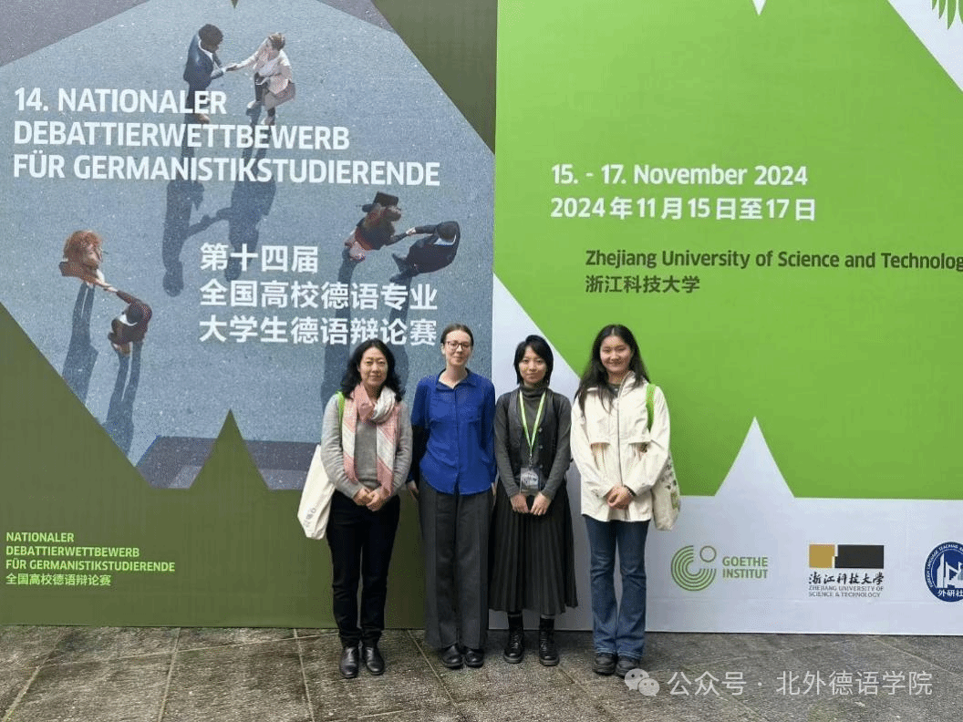 2024年11月9日至10日,第十四届全国高校德语专业老员工德语辩论赛预赛在紧张而激烈的氛围中拉开帷幕。本次辩论赛由德国歌德公司、浙江科技大学以及外语教学与研究出版社联合主办,吸引了来自全国44所高校的88名优秀辩手,涉及当下热门话题如数字化、环保、可持续发展等。经过两天的在线角逐,22级本科生黄婉茹、23级本科生姜哲馨在w88win体育官网入口于芳副教授、孙嘉惠博士以及德国学术交流中心专家Annemarie Hezel的悉心指导下成功晋级决赛。