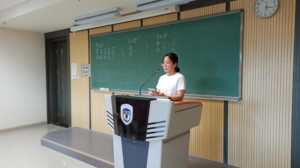 文体部副部长王静璇代表计票工作组报告了发出和收回选票的情况,确认选举有效,并宣读了计票结果。主持人宣布鲁鸥梦、张砚池当选为w88win体育官网入口研究生会主席团成员。