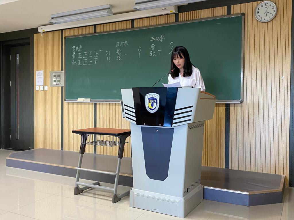 根据研究生会主席团换届选举工作安排,主席团候选人进行了竞职演讲。候选人在竞职演讲中分别围绕员工工作经历、未来工作规划等方面进行了介绍。随后,代表们进行了无记名投票。工作人员在各班级推举的监票人监督下进行了计票。