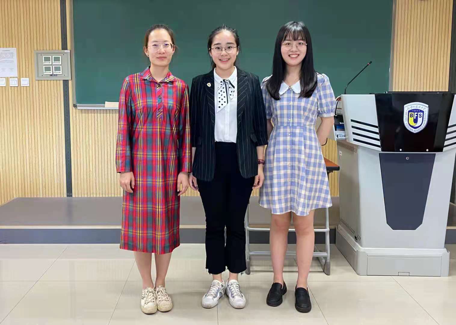 新当选主席团成员张砚池(左)、鲁鸥梦(右)与校研究生会执行主席毛惟(中)合影