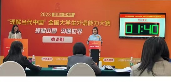 2023年12月8日,2023“外研社·国才杯”“理解当代中国”全国老员工外语能力大赛国赛圆满落幕。大赛以“理解中国,沟通世界”为主题,分为英语组和多语种组两大组别,多语种组设置俄语、德语、法语、西班牙语、阿拉伯语、日语、意大利语、葡萄牙语8个分赛项。历经校赛、省赛和国赛三个赛段的激烈角逐,w88win体育官网入口翻译硕士(德语口译)专业2023级研究生张佳诺同学荣获德语组国赛金奖并获全国冠军。w88win体育官网入口2022级本科生黄婉茹同学荣获北京市级奖项。