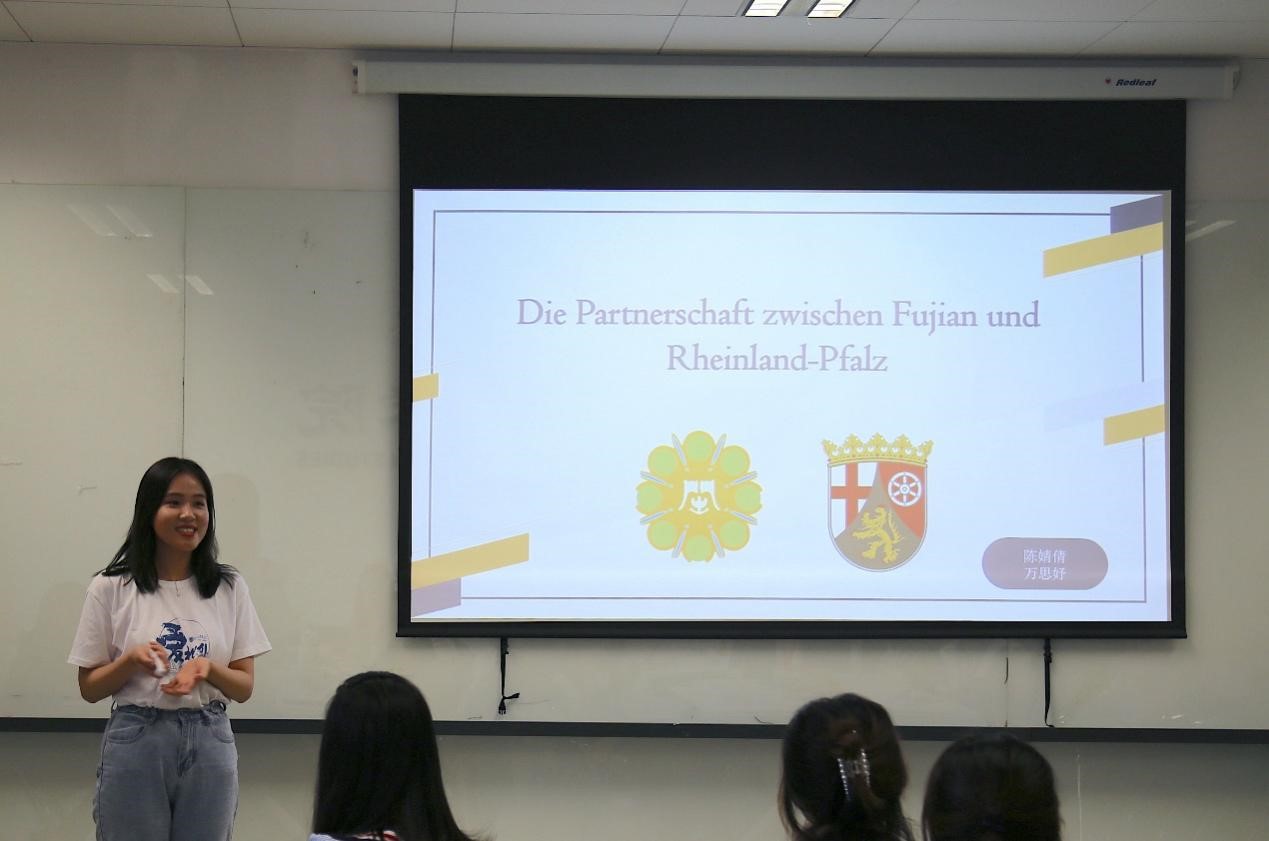 w88win体育官网入口本科生陈婧倩和万思妤以闽南语中“茶”和德语中“Tee”的发音之相似为例开启了对中德交流的讲述,报告以福建省与德国莱法州的交流合作为主题,从经济、教育与科技三个方面介绍了两地三十年来的交流合作,并展望了中德两国未来的发展和合作空间。