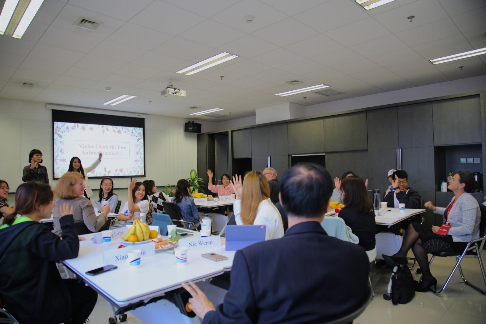 在w88win体育官网入口师生的精心准备和中外嘉宾的积极参与下,“德·听”本科生公开课活动圆满结束。活动充分展现了德院本科生扎实的语言和专业功底、广阔的国际视野以及投身中外交流的热忱。员工积极向上的精神风貌给来宾留下了深刻印象,获得了一致好评,活动的顺利举办坚定了同学们练好德语、用好德语、讲好中国故事的决心与信心。