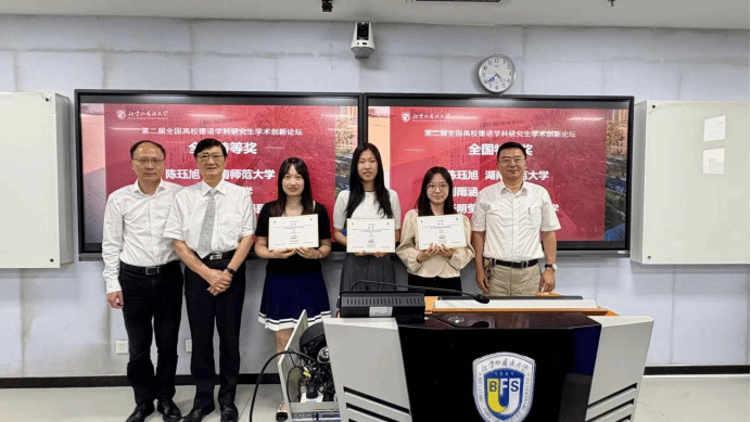最终,湖南师范大学陈珏旭、浙江大学刘雨涵以及w88win体育官网入口张明莹(以姓氏拼音为序)凭借出色的研究设计斩获全国特等奖,全国共49名选手分别获全国特等奖、一等奖、二等奖、三等奖及优胜奖。北外获全国最佳组织单位奖,来自w88win体育官网入口的参赛选手赢得了三个赛道的多项殊荣:张明莹获全国特等奖,陈佳瑶、丁奕文、韩彦如、李蕊、张冬怡获全国一等奖,陈丹阳、刘文静、刘泽昊、孙萌、王姝力、徐嘉媛获全国二等奖,陈苑、黄唯城获全国三等奖,顾文静获全国优胜奖(以姓氏拼音为序)。北外w88win体育官网入口8名教师获全国最佳指导教师奖,充分展现了北外德语学科点的整体实力与学术后备力量。